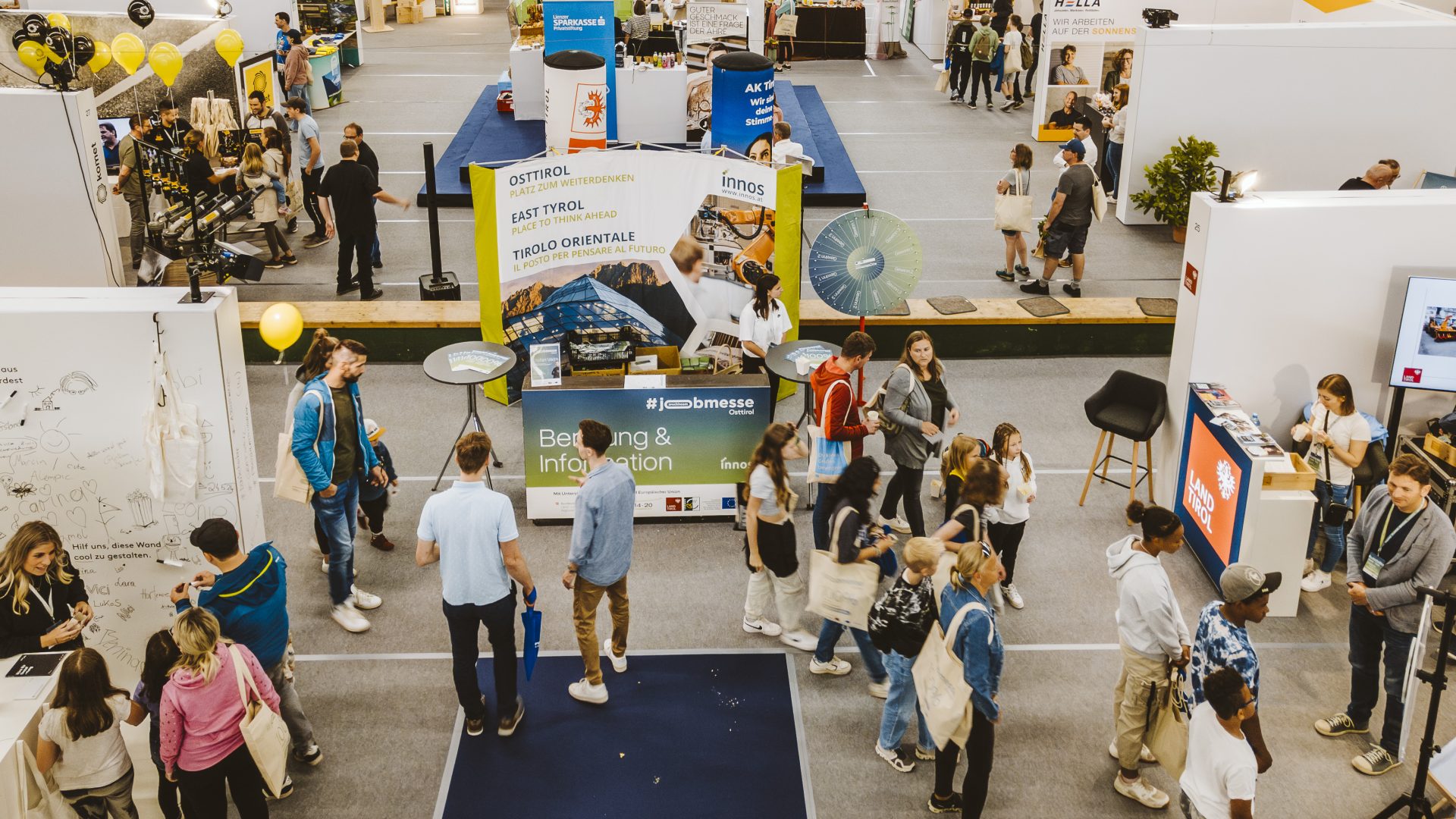 Osttirol ist ein innovativer Wirtschaftsraum, in dem viel in Bewegung ist und der Arbeitsplätze in unterschiedlichsten Wirtschaftszweigen bietet. Die durch LEADER unterstützte Jobmesse wird als Kooperationsprojekt der INNOS GmbH, der Arbeiterkammer, der Osttiroler Investment GmbH, der Privatstiftung Lienzer Sparkasse und der Wirtschaftskammer sowie zahlreicher Betriebe aus der Region veranstaltet.