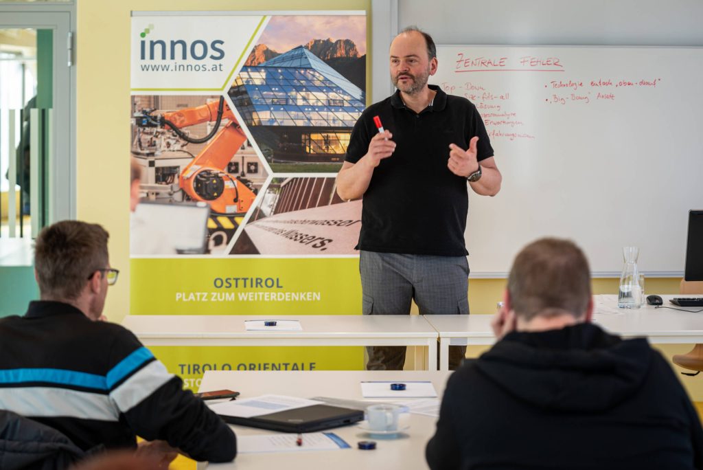 Mit dieser Frage beschäftigte sich eine dreiteilige Kursreihe am MCI Campus Lienz. Mehr als 20 Vertreter:innen aus Osttiroler Unternehmen nahmen an der Veranstaltungsreihe „KI im Innovationsmanagement: Verstehen, anwenden, umsetzen im KMU“ teil. Organisiert wurde sie von der INNOS GmbH in Kooperation mit dem Digital Innovation Hub West (DIH West) und der Standortagentur Tirol. Geleitet wurden die Workshops von Oliver Som, Professor und Fachbereichsleiter für Innovations- und Technologiemanagement am MCI.